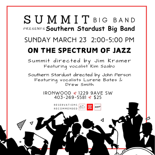 On Sunday March 23, the Southern Stardust joins Calgary’s Summit Big Band at Ironwood Stage and Grill for an afternoon of Big Band jazz! Two bands – one great afternoon of music!
